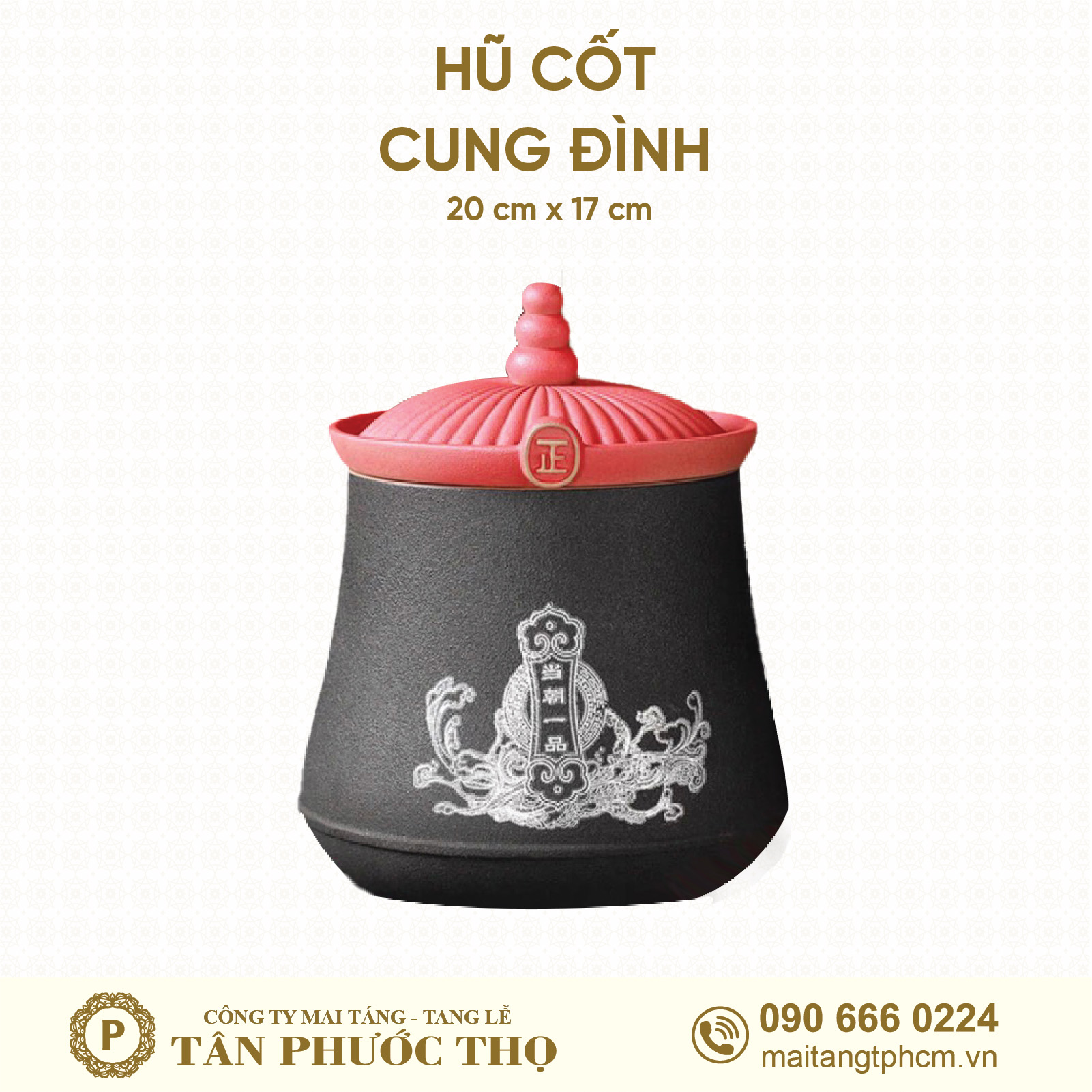 Hũ cốt cung đình là loại hũ cốt trang trọng và cao cấp, hình hộp vuông khắc thánh giá, giá thành tương đối cao, được sử dụng trong các tang lễ trang trọng